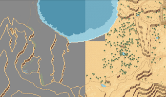 For Source of Mana, this map will take on a new purpose: it will serve as the final desertic area on the west of Tulimshar, leading to the Manayir Tower.WildX proposed the idea of a vast desert region to the south of this area. I agree that this desert map should serve as the entrance to the savannah later on, but for now, our beach map will block that access until this map development start.